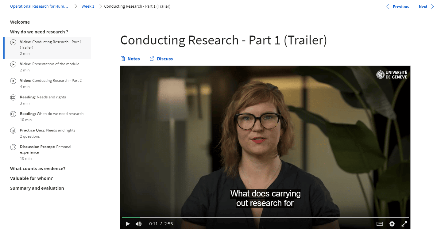 In this course by University of Geneva you will develop fundamental knowledge and skills to engage in humanitarian research. The course will cover humanitarian research methods, study design and outline how operational research can advance humanitarian practice. In this course you will tackle the most fundamental questions of humanitarian research: