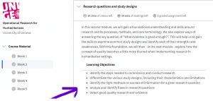 Another aspect we liked about this course is that it clearly outlines the learning outcomes and uses measurable action-verbs, meaning it will clearly identify what you will be able to do after completing the course. Here are some examples.