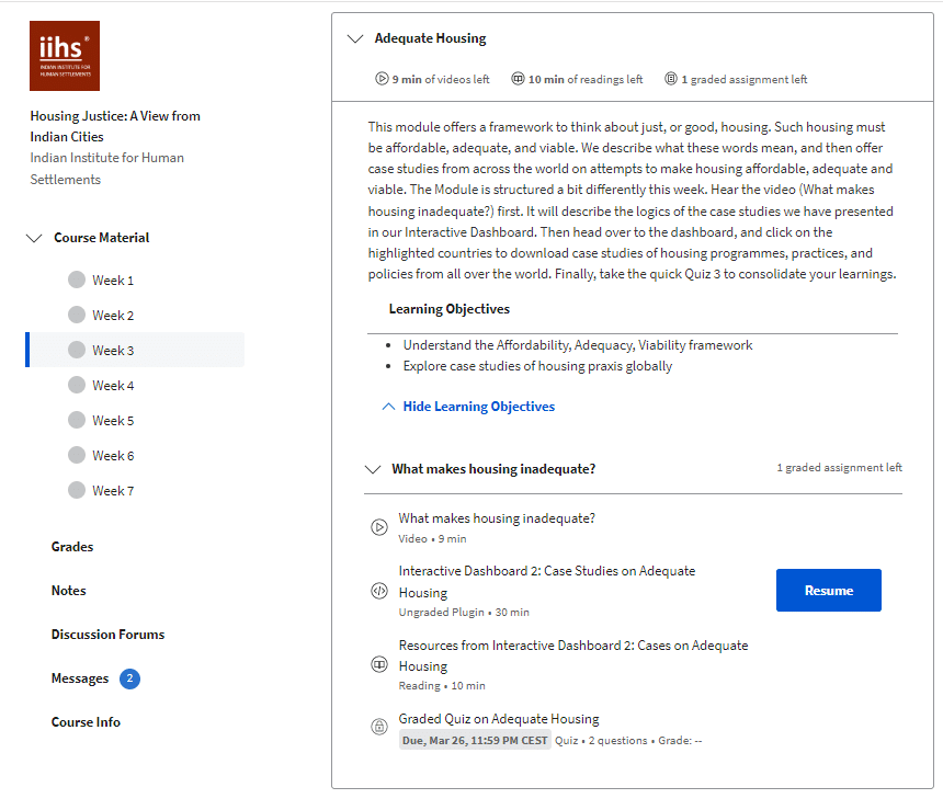 Overall, housing injustice has far-reaching impacts on a range of human rights, making it a crucial issue to address through policy and social action. The first step in building change is equipping yourself with knowledge and skills to take action. For this purpose, the Indian Institute for Human Settlements is offering an online course on Housing Justice. Is it worth your time? We take a look.