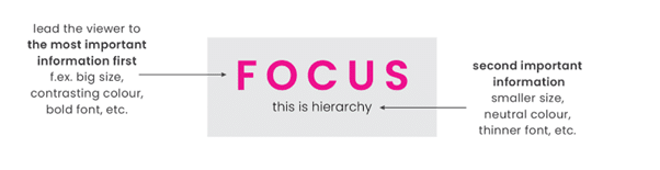 Contrast is great for helping the viewer focus on what is most important. Think of it beyond just colour—you can create contrast with opposites, for example, big vs. small, bold vs. thin, narrow vs. wide, serif vs. sans-serif or traditional vs. modern.